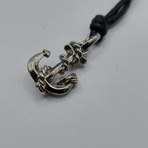 Ancora Marina in argento 925 anticato scultorea a tutto tondo, realizzata a mano in modo artigianale, tempi tecnici di produzione 4/7 g. lavorativi. Legatura cordino cotone cerato regolabile.