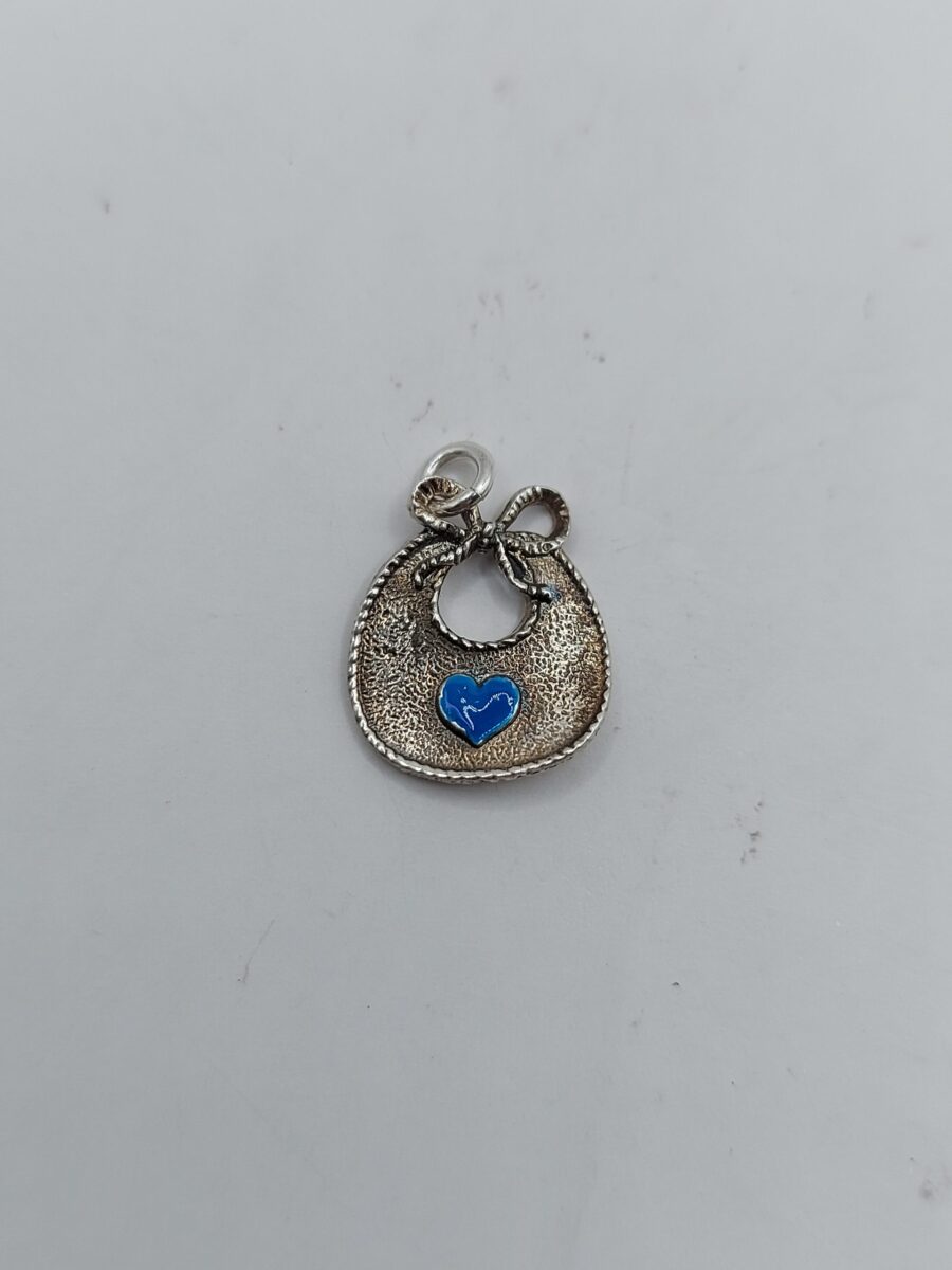 Charms bavaglino in argento 925 anticato  con anellina aperta ( acquistabile singolarmente oppure assieme a tutti i charms Linea Kids bracciale catenina compreso) Possibilità di aggiunta smalto o rosa o azzurro . Possibilità di incidere nome nel retro ( per questa opzione selezionare la voce incisione in aggiunta al carrello.