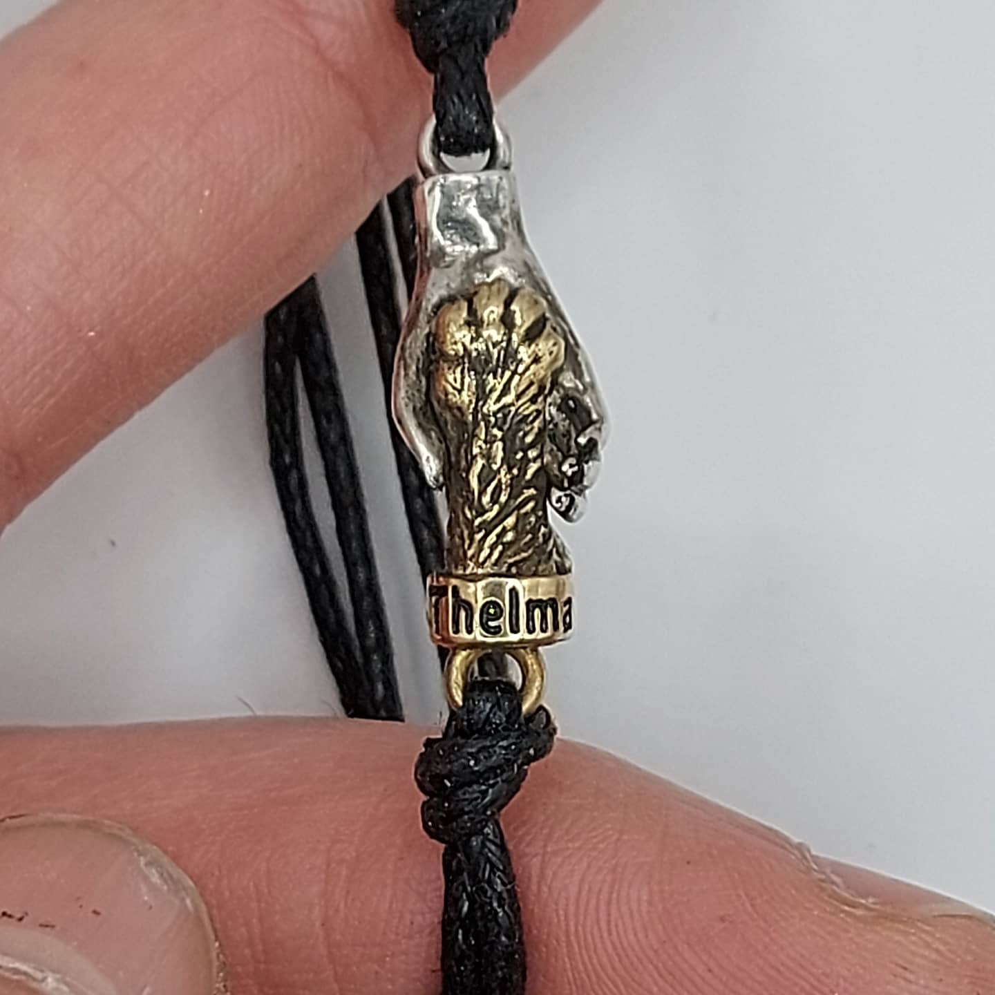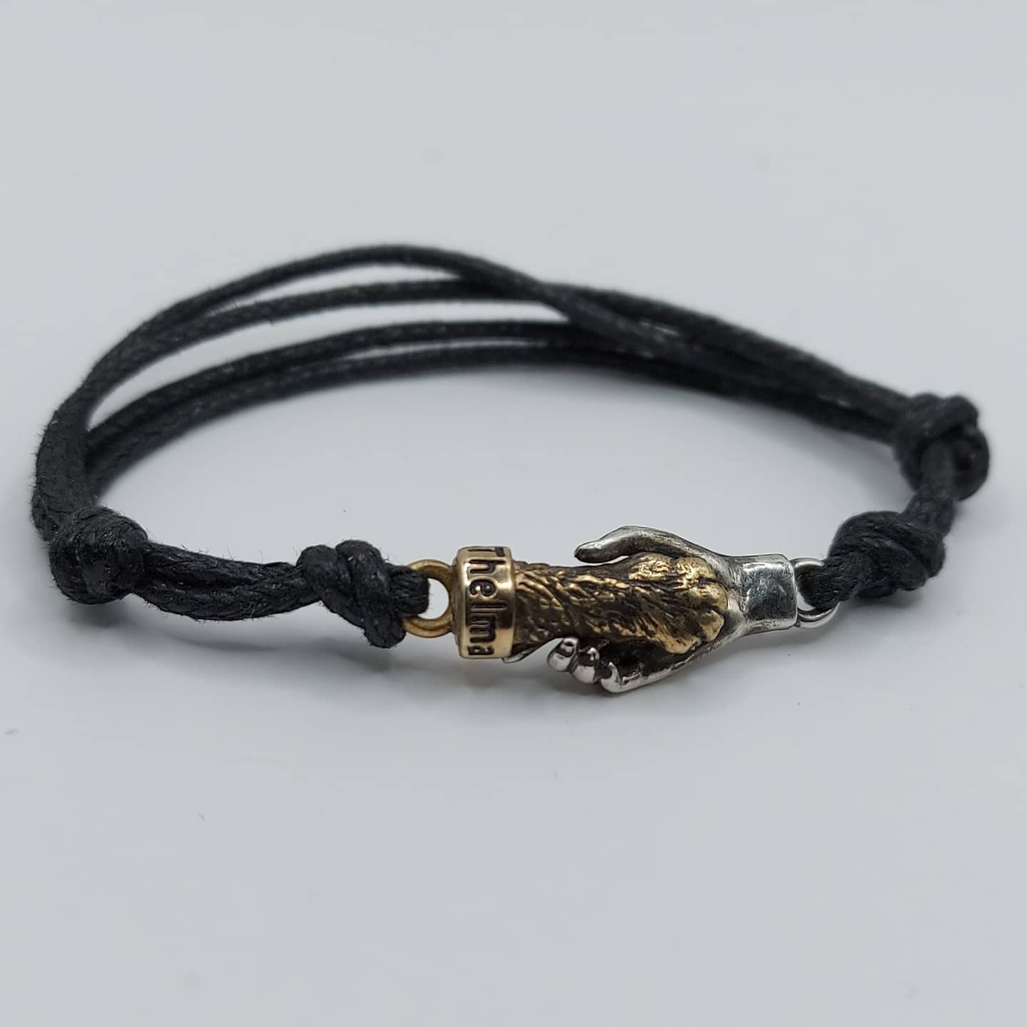Bracciale raffigurante zampina gatto con nome personalizzato del proprio animale, legatura cordino in cotone cerato regolabile. Scegli la versione preferita tra le due disponibili o Argento e Lega o Tutto Argento, possibilità di scelta colore cordino, salvo diversa comunicazione il colore cordino fornito sarà nero. Tempi tecnici di realizzo 5/7 g lavorativi. Incisione al laser del nome già compresa nel costo finale.