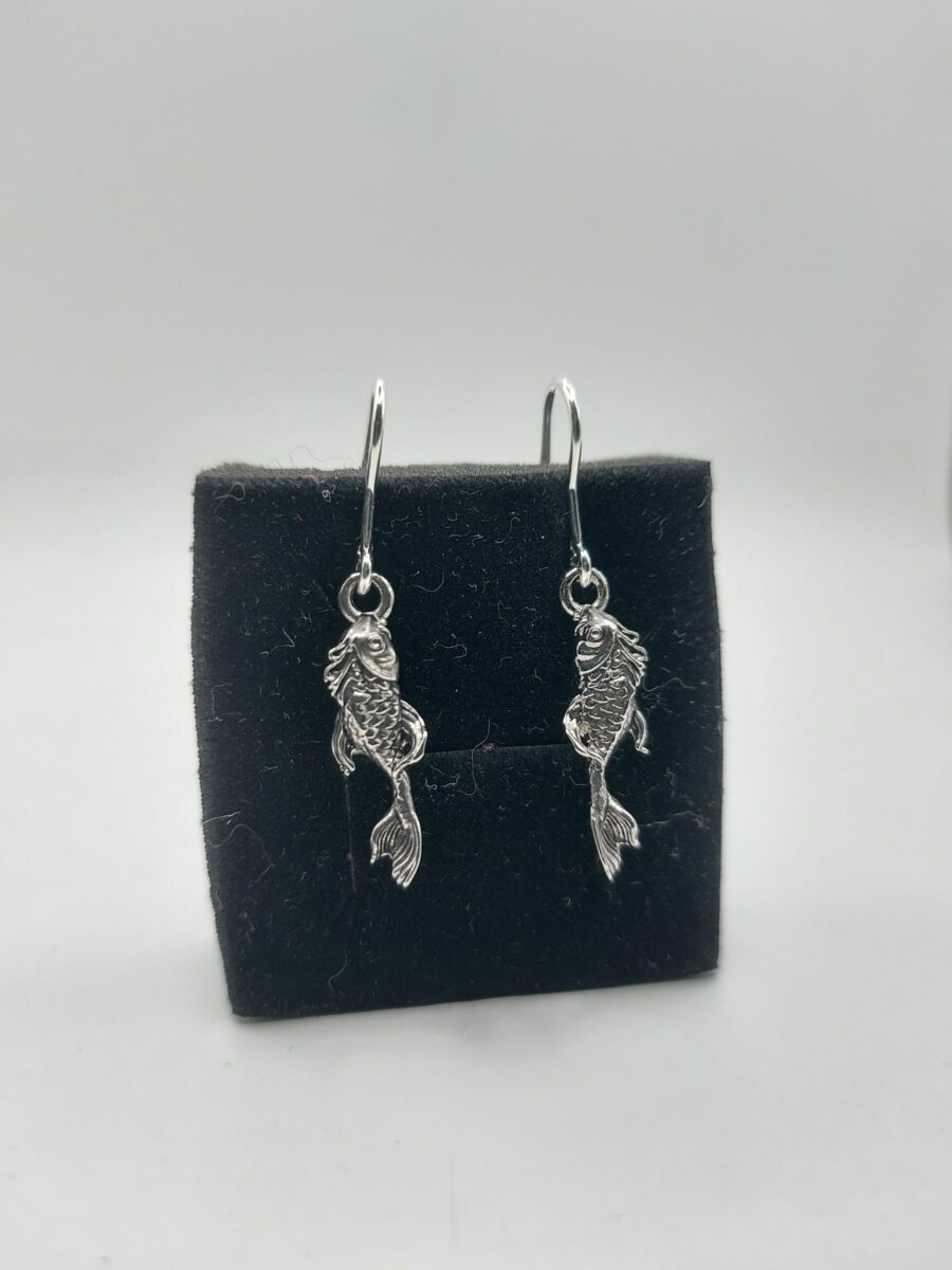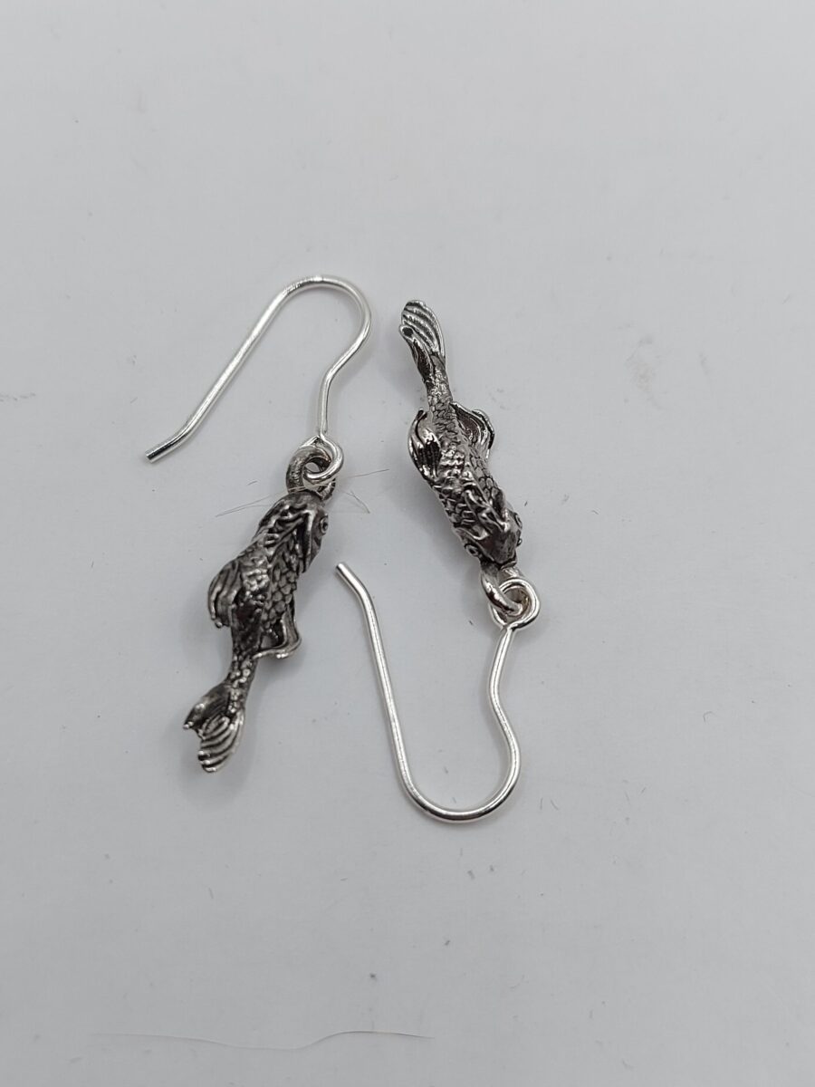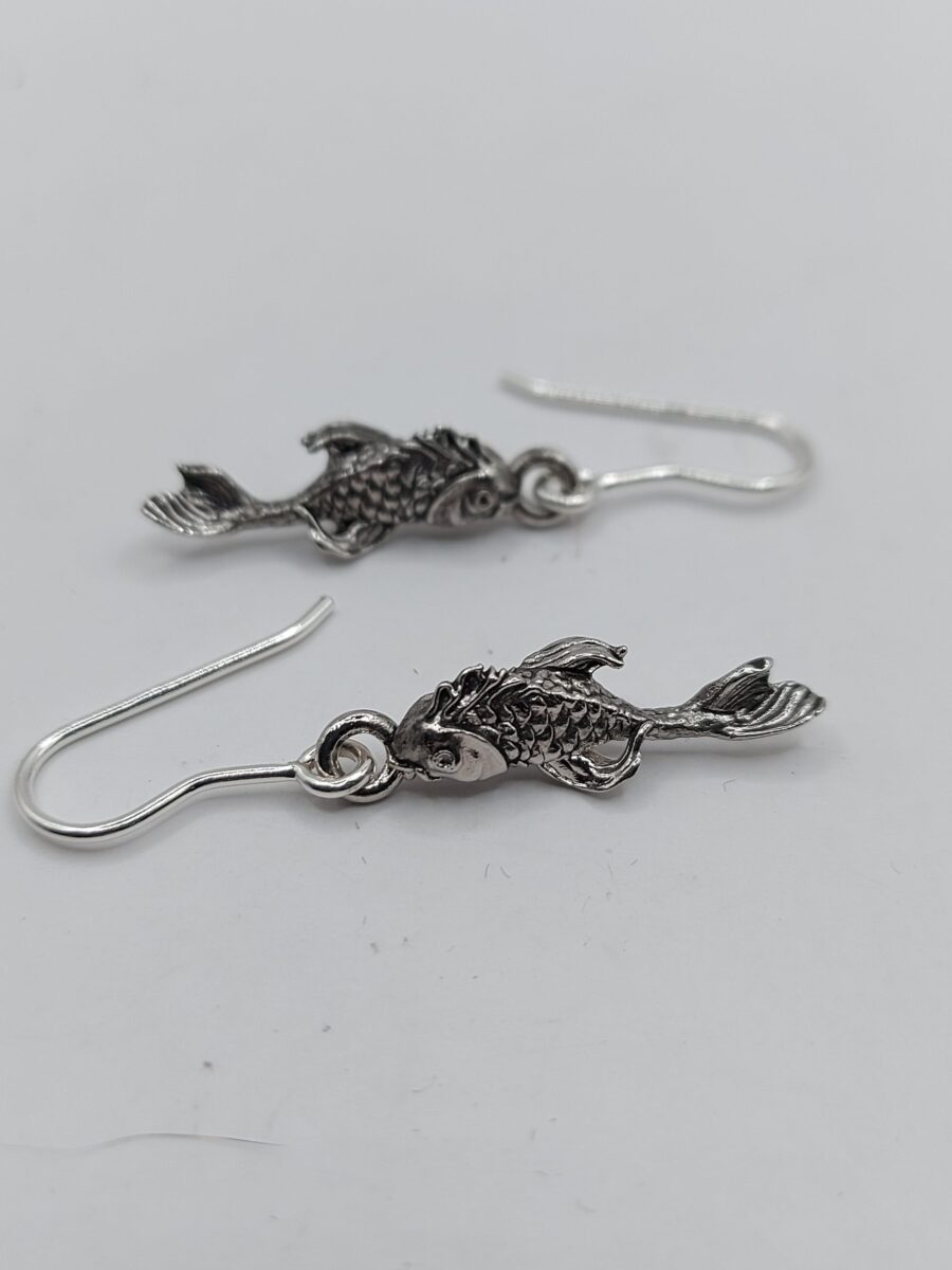 Orecchini pesce linea Carpa Koi versione con monachella, in argento 925 anallergico anticato.