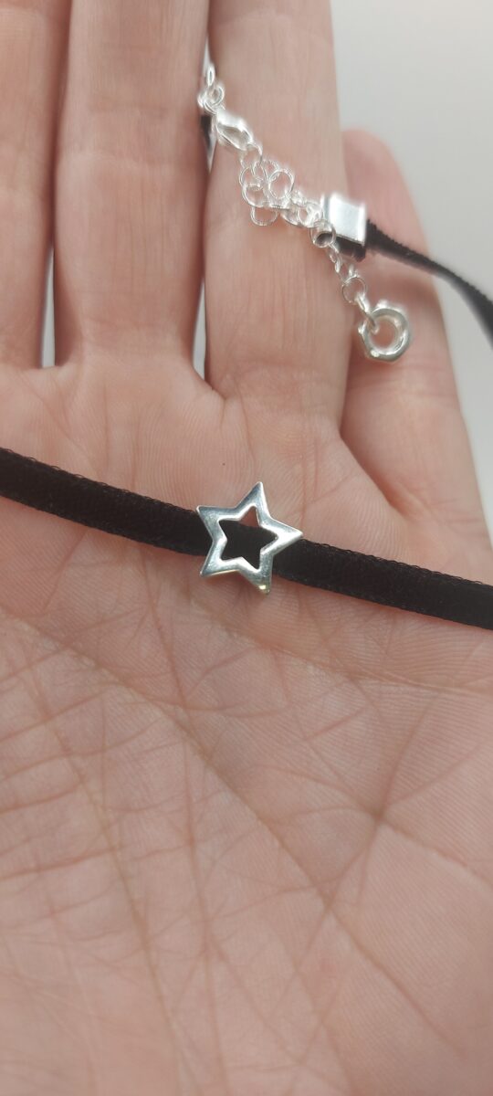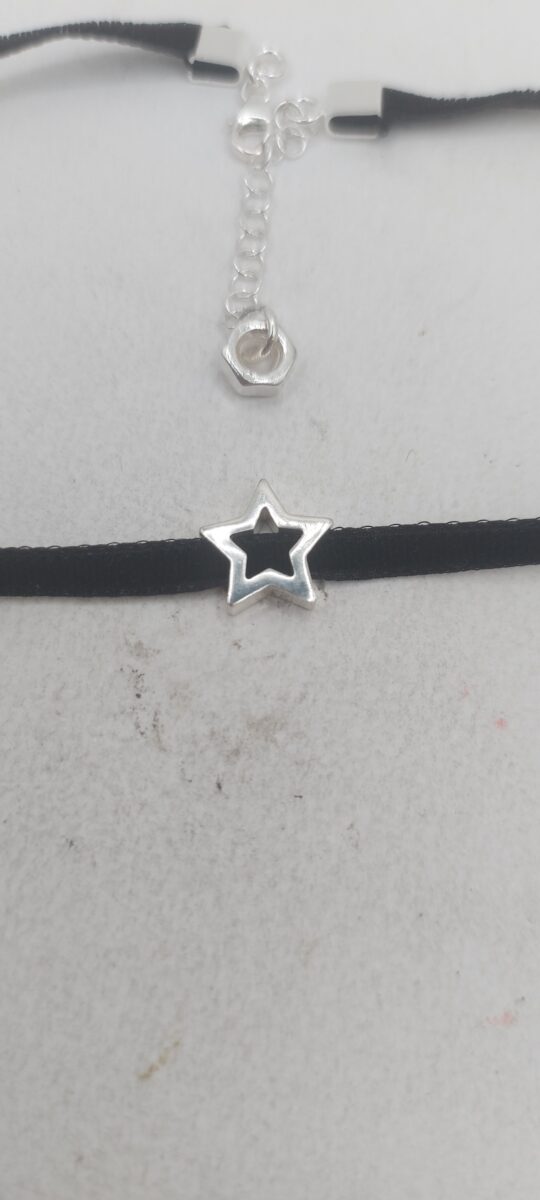 Stella in argento 925 su choker di velluto nero da 4mm lunghezza 28 cm più catenella allungo per regolare la chiusura di 4cm circa. Realizzato su misura e al momento della richiesta con tempi tecnici di 4/7 g. lavorativi.