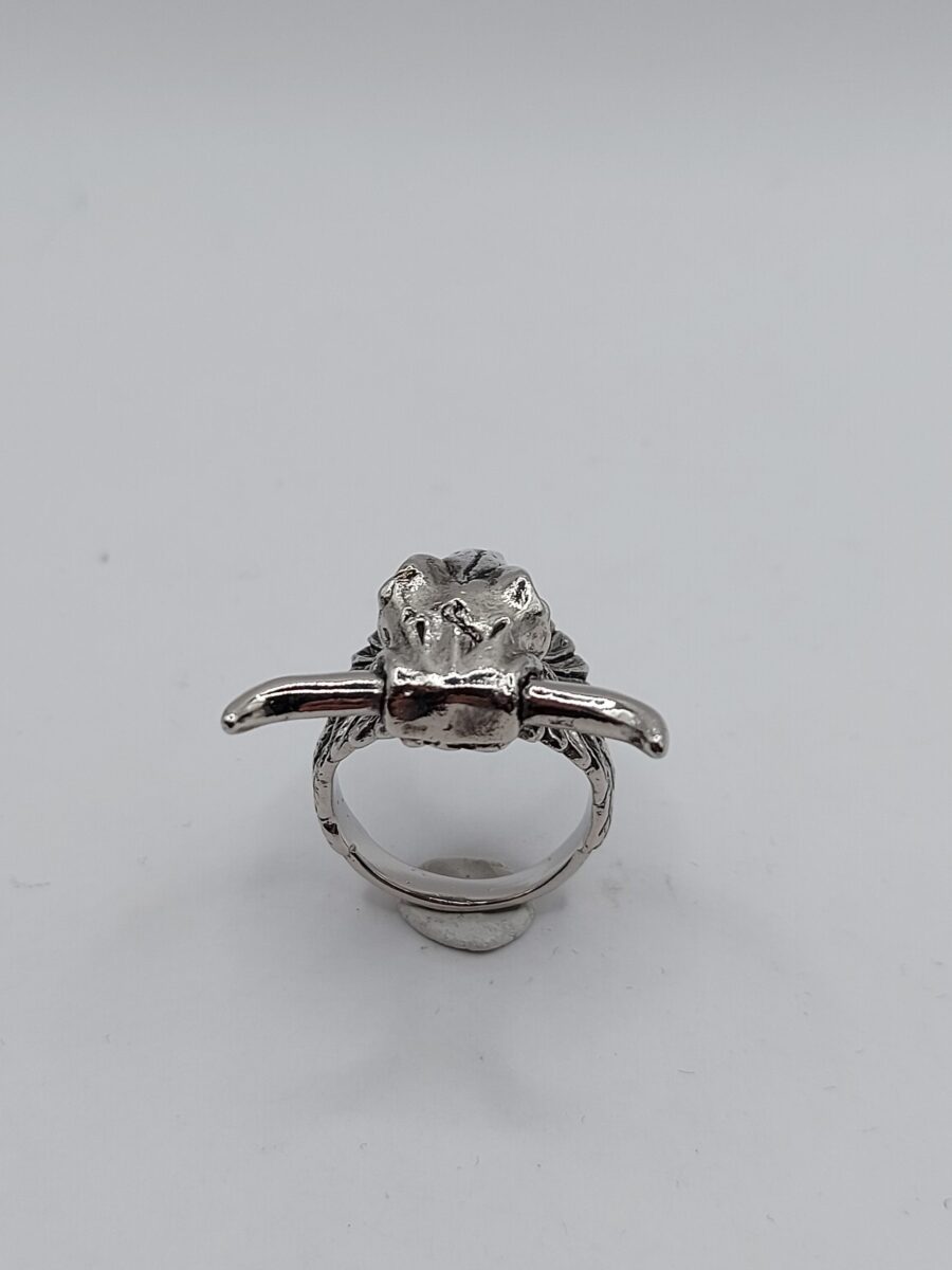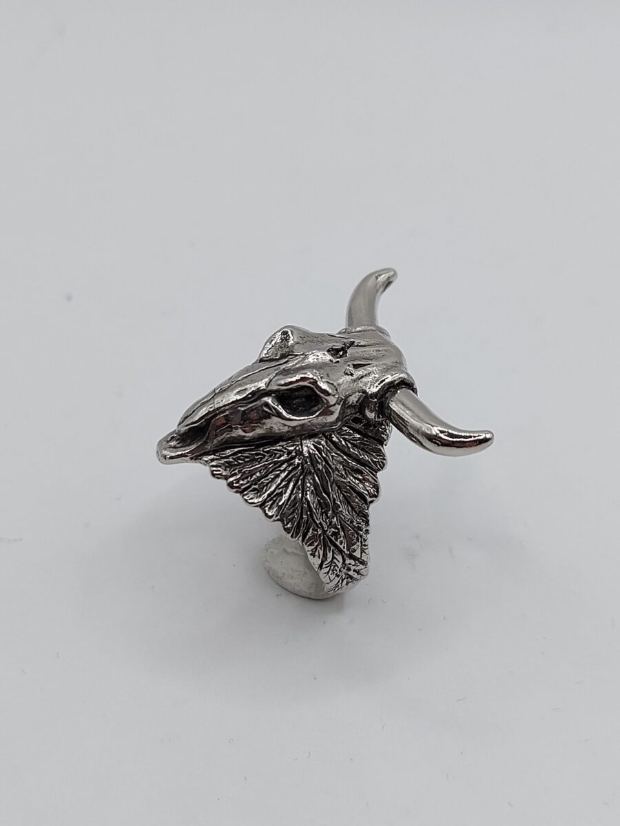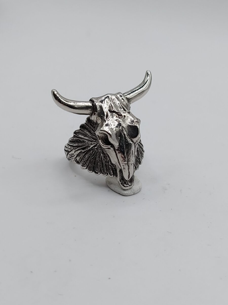 Anello teschio Bue americano in argento 925 anticato, realizzato su misura al momento della richiesta con tempi tecnici di 4/7g. lavorativi.